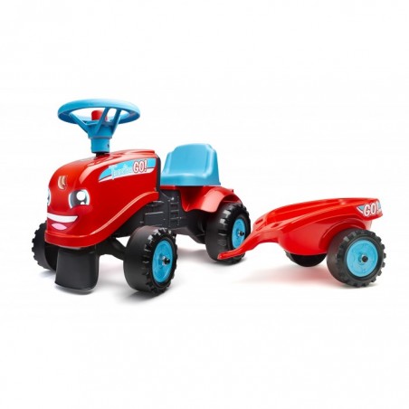 Falk Go! Red Tractor with Trailer and 2 Sets of Stickers, Ride-on and Push-along +1 Year FA200B